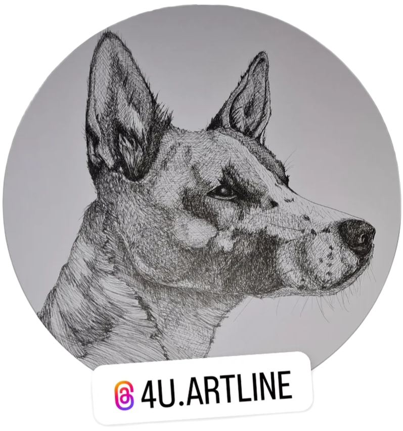Die Fertigung eines Haustierportraits anhand eines Fotos. Ich arbeite die Zeichnung auf rein weißen Zeichenkarton. Ich benutze für meine Technik einen Pigmentliner der hochgradig UV -Beständig ist und ich arbeite die Zeichnung in der Größe 30cm×40cm aus. Meine fertigen Arbeiten versende ich immer mit einem Passepartout ,in einem leicht abgestuften Weißton. Die Endgröße meiner Werke ist dann passend für die Rahmengröße 40cm×50cm. Ich arbeite immer in Absprache mit dem Auftraggeber ( WhatsApp) und kann auf Wunsch Elemente wie Namen, Daten und Dekoration hinzufügen. Eine einfache Zeichnung startet bei 150,-€ Collagen und andere Größen ab 190,-€ und immer in Absprache. Eure Eva 4u.artline