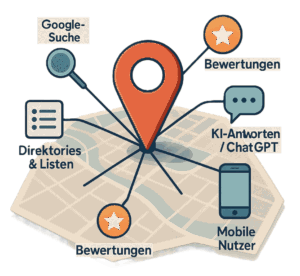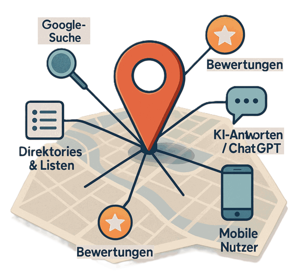Wir sorgen mit deinem Eintrag auf unserer Website dafür, dass dein Unternehmen lokal gefunden wird – auf Google und in KI-Antworten wie ChatGPT.