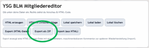 - Export: Speichert ein HTML-Snippet als Datei. Der “Export als ZIP” wird für die Anmeldung benötigt!